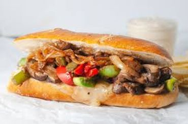 Delicious sautéed mushrooms, onions and peppers topped with cheez. placed in a soft hoagie roll